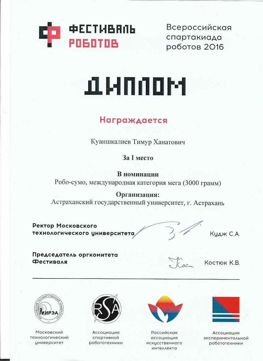 10. Куаншкалиев Тимур Ханатович Фестиваль роботов 2016 г. (Россия, Москва)